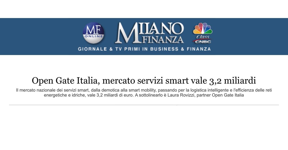 Milano Finanza: Open Gate Italia, mercato servizi smart vale 3,2 miliardi